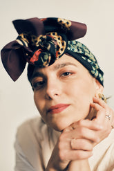 The turban prints, made of soft and bright silk twill, come from a selection of scarf drawings in the Mantero archive. Starting from Mantero's core product - the classic 90x90 cm carré - the turban has an original package design. It can be worn in an unlimited number of knots and becomes a perfect synthesis of the company and brand values. Because of its charitable purpose, it has a special, deliberately democratic price.
