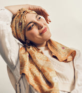 Vita turban is cheerful and colourful: it interprets women’s strength and energy, celebrating their beauty and enhancing their femininity. The bright and soft silk twill - a valuable fabric suitable for all seasons - becomes a special caress for women in care and summarises the key values of female solidarity. Buying it, giving it as a gift or wearing means actively participating in a virtuous path.