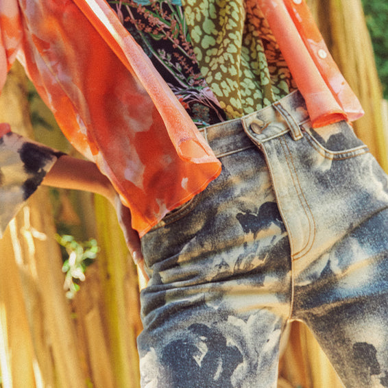 the printed denim is the new feature of the spring-summer collection. With a straight and soft cut, this classic five-pocket regular fit is made unique by the four distinctive prints of the season and the stonewash effect