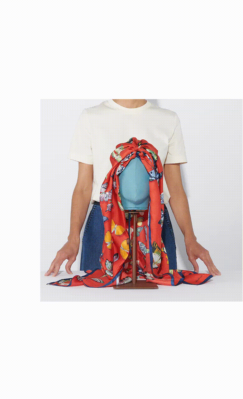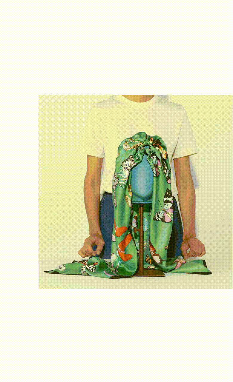 Vita turban crafted from a 90x90 cm carré in silk twill.