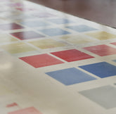 Una volta realizzata una variante di stampa, i quadri vengono lavati e sono pronti per poter ricreare lo stesso motivo con armonie cromatiche differenti.