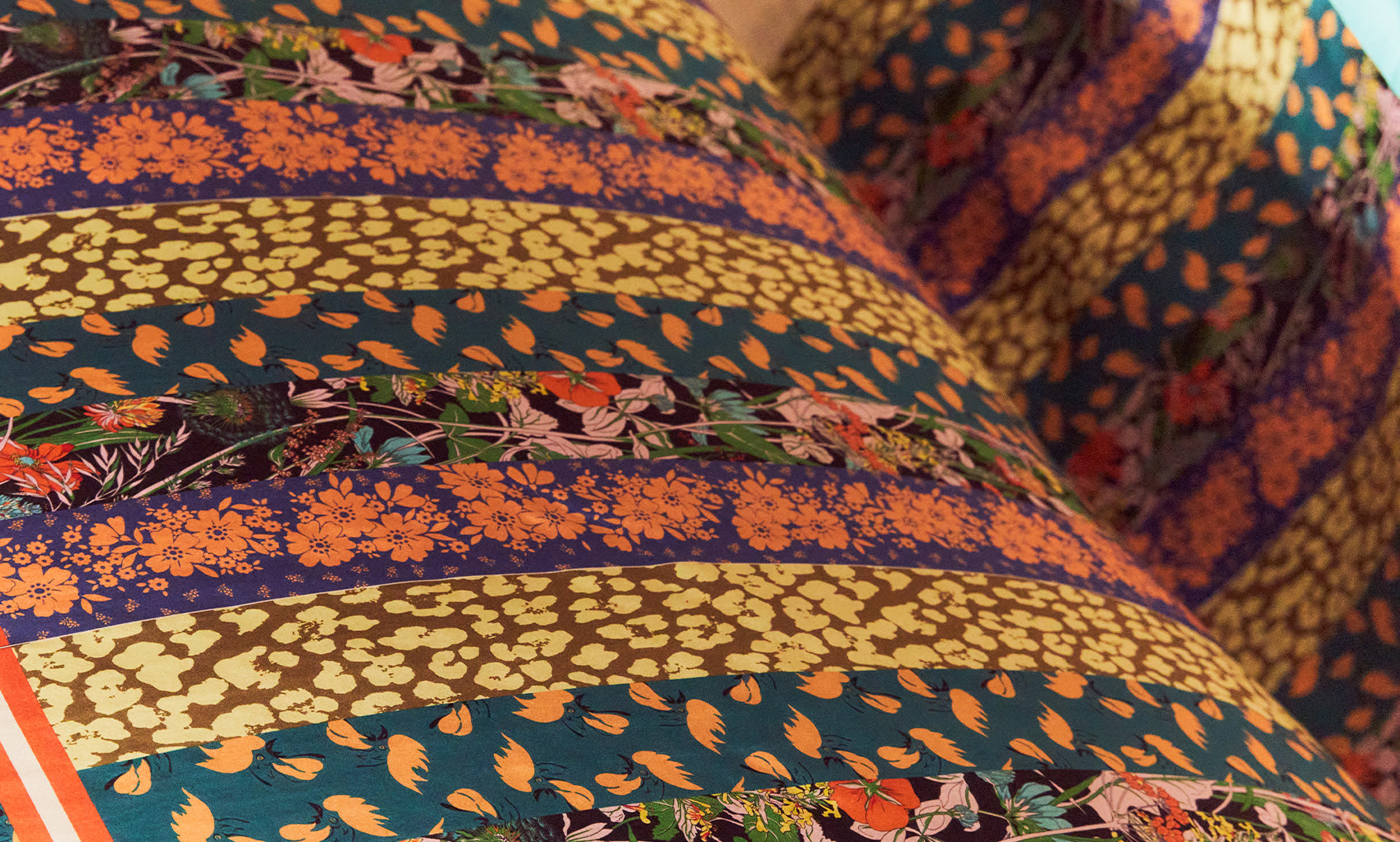 Dimensione 27x183 cm. Bandeau a soffietto con quattro diverse stampe. Made in Italy.